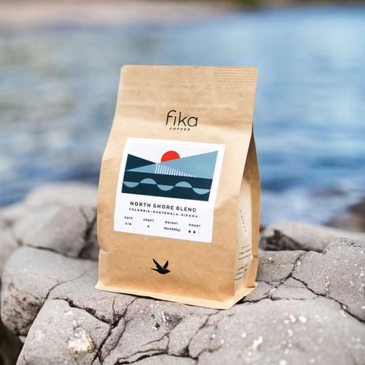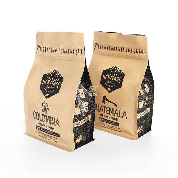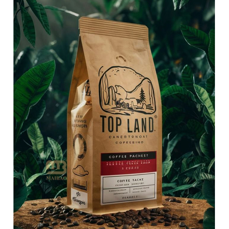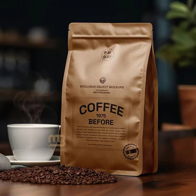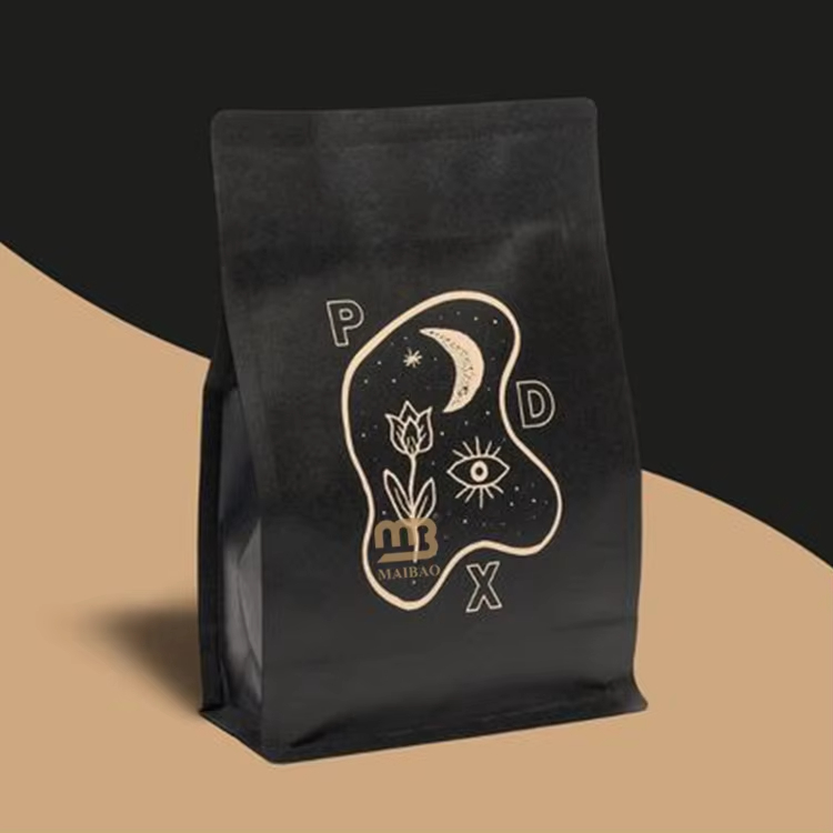 Индивидуально напечатанный логотип, матовые чёрные кофейные зёрна, мука из ямса, хлопья маниоки, алюминиевая фольга, устойчивый пакет с плоским дном