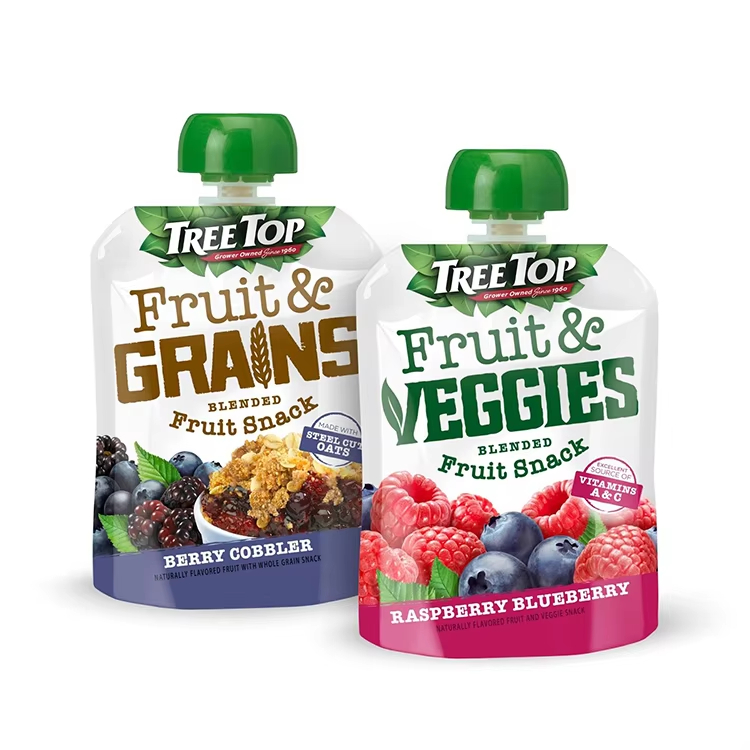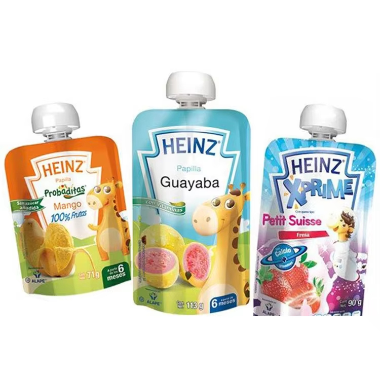 упаковка в виде мешков с носиком в основном используется для упаковки фруктовых соков, спортивных напитков, бутилированной питьевой воды, рассасывающегося желе, приправ и других продуктов. постепенно увеличивайте количество.