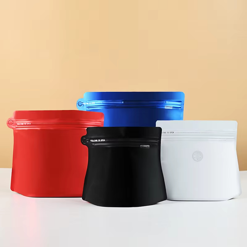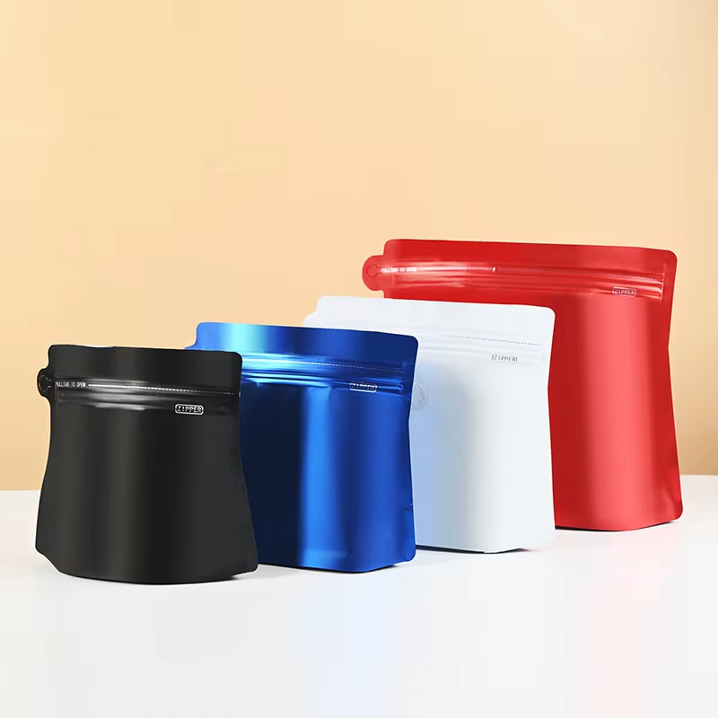 Многоразовая упаковка для кофе 250 г, 500 г, 1 кг, матовый глянцевый, с плоским дном, с клапаном и застежкой-молнией