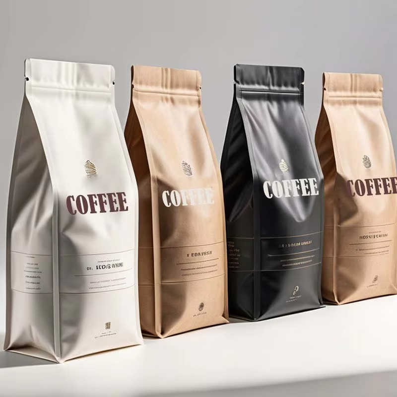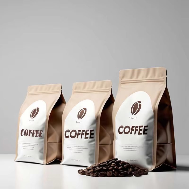 Пакеты для кофе с индивидуальным принтом, клапаном, боковой молнией, плоским дном, многоразовые, запаянные, для кофейных зерен