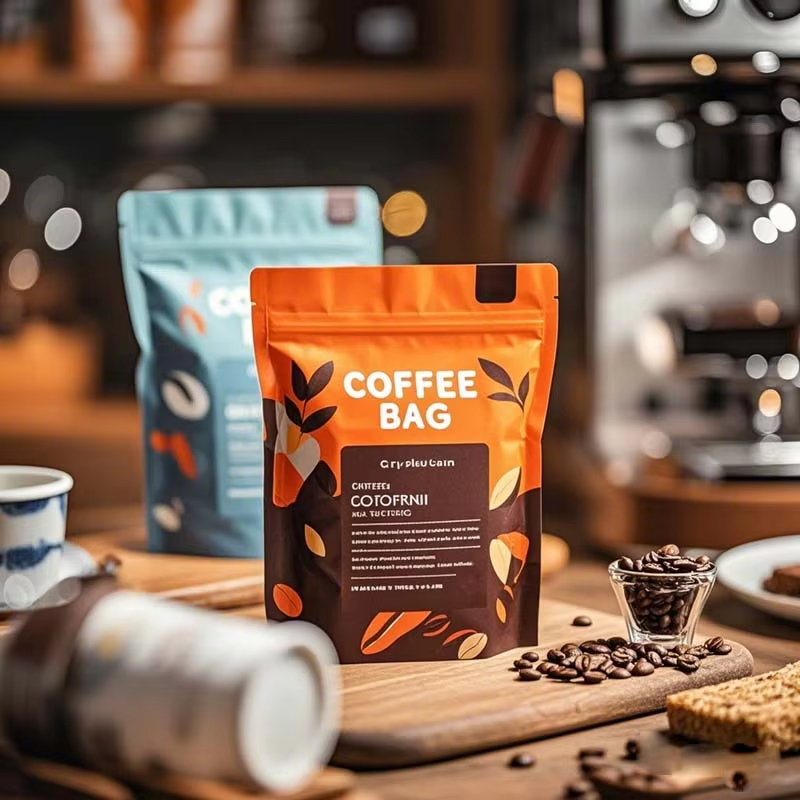 Пакет для упаковки кофейных зерен с индивидуальной печатью 250 г 500 г, устойчивый пакет для кофе с клапаном, многоразовый, с боковой молнией, с плоским дном